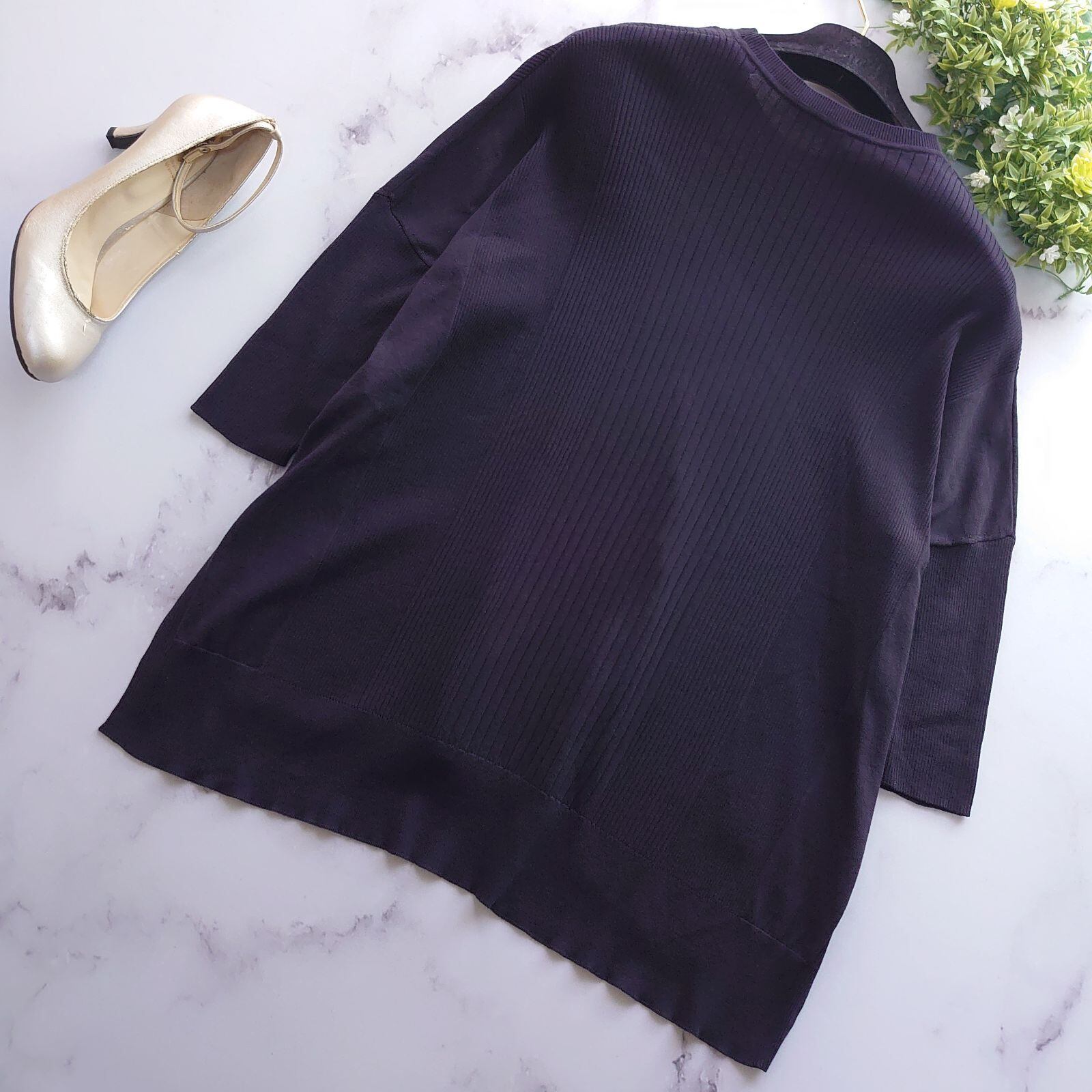 theory luxe セオリーリュクス シルク Lewis Lee str 七分袖 長袖 セーター リブニット カットソー 紺 ネイビー クルーネック プルオーバー XS サイズ32 トップス ブラウス レディース