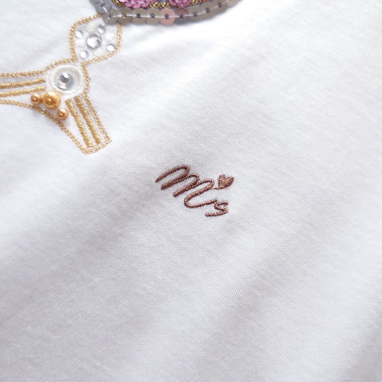 ・刺繍やビジュー、スパンコールで華やかにデザインされたカクテルが目を惹くとても可愛いカットソーです